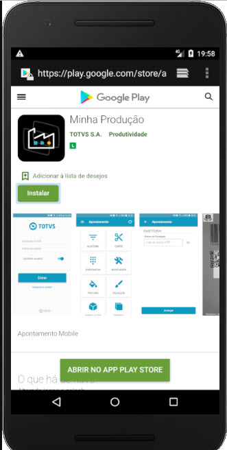 Download do App Minha Produção em Android: https://play.google.com/store/apps/details?id=com.totvs.mobileApont&hl=en_US