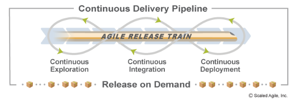 As empresas SAFe implementam o DevOps para quebrar silos organizacionais e desenvolver uma pipeline de entrega contínua (CDP) – uma máquina de inovação de alta performance capaz de entregar soluções líderes de mercado à velocidade dos negócios.